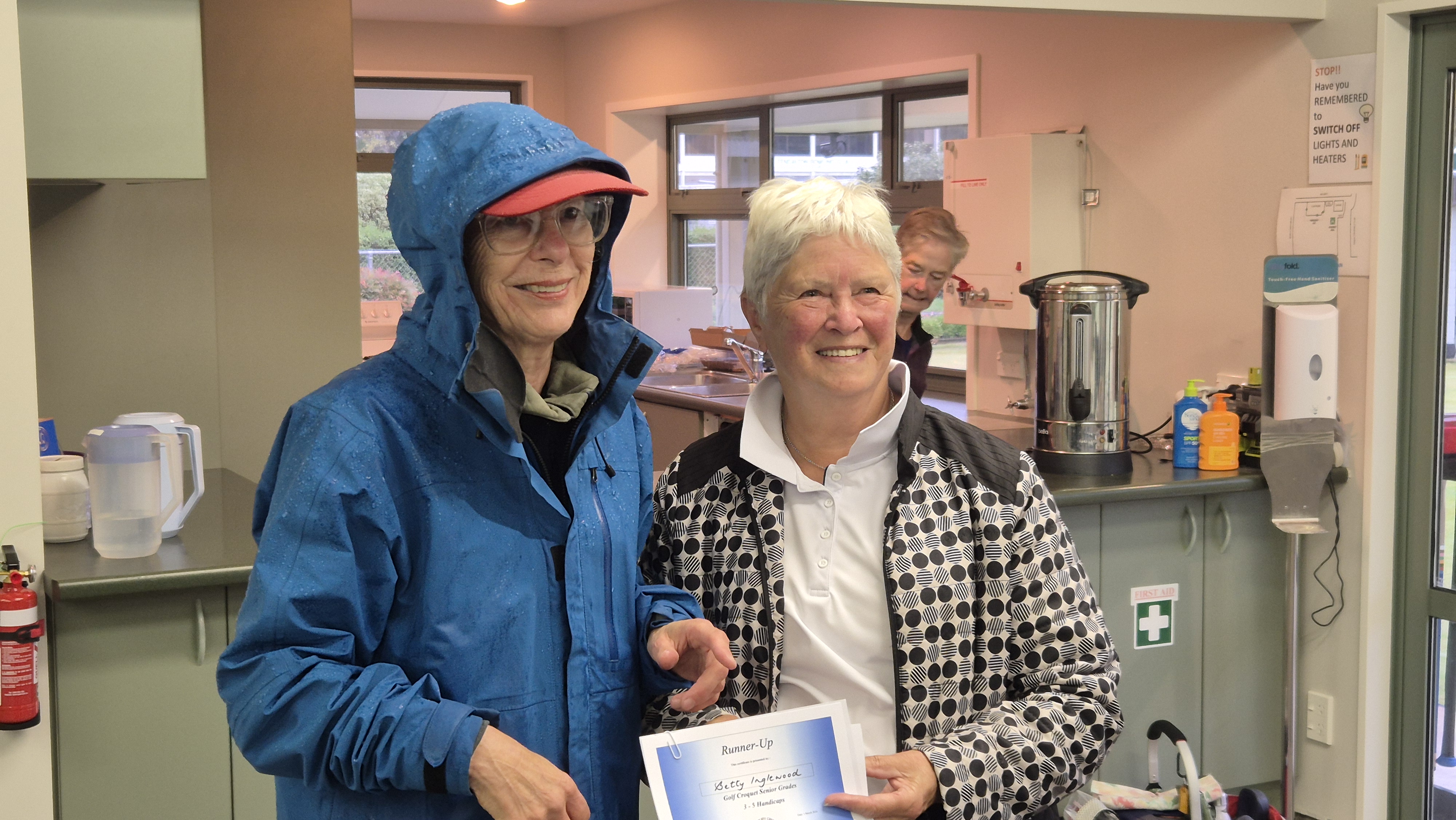 Betty played her final game in steady rain and presentation was made as soon as she had finished.